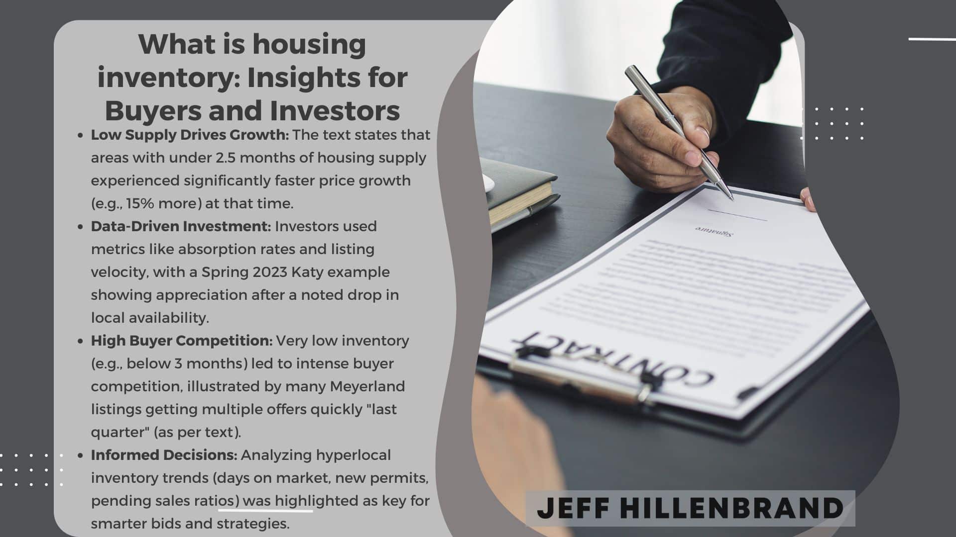 Sustained inventory levels below 4 months’ supply typically create seller’s markets, while exceeding 6 months favors buyers. Local factors like job growth or interest rates can accelerate these shifts in specific Houston submarkets.
